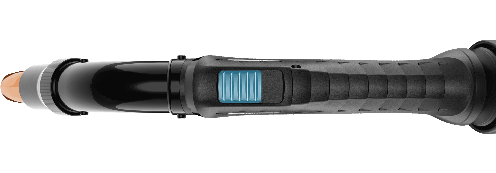 One of the key features in the ergonomic design of the ERGOFRESH is the detachable pistol grip handle. When welding using the traditional handle, the welders’ shoulder and elbow muscles are under the constant stress of the workload. With the pistol grip handle the shoulder and elbow position is completely different and the muscle strength load is 25–64% lower depending on the welding position (EMG-measurements made by an independent specialist company- Myontec). The pistol grip is designed to be easy detachable with one click and no tools needed. Due to its small size, the pistol grip can easily be carried in the welders’ pocket. The pistol grip is included in every standard torch sales package.