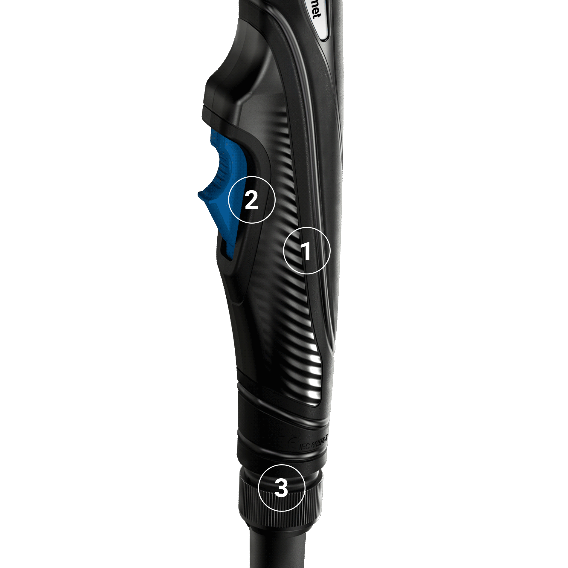 The connection between the cable and the handle is supported by ball joints which allows a unique freedom of movement during cutting. The ball joint protects the electrical connection and improves the life of the cable.