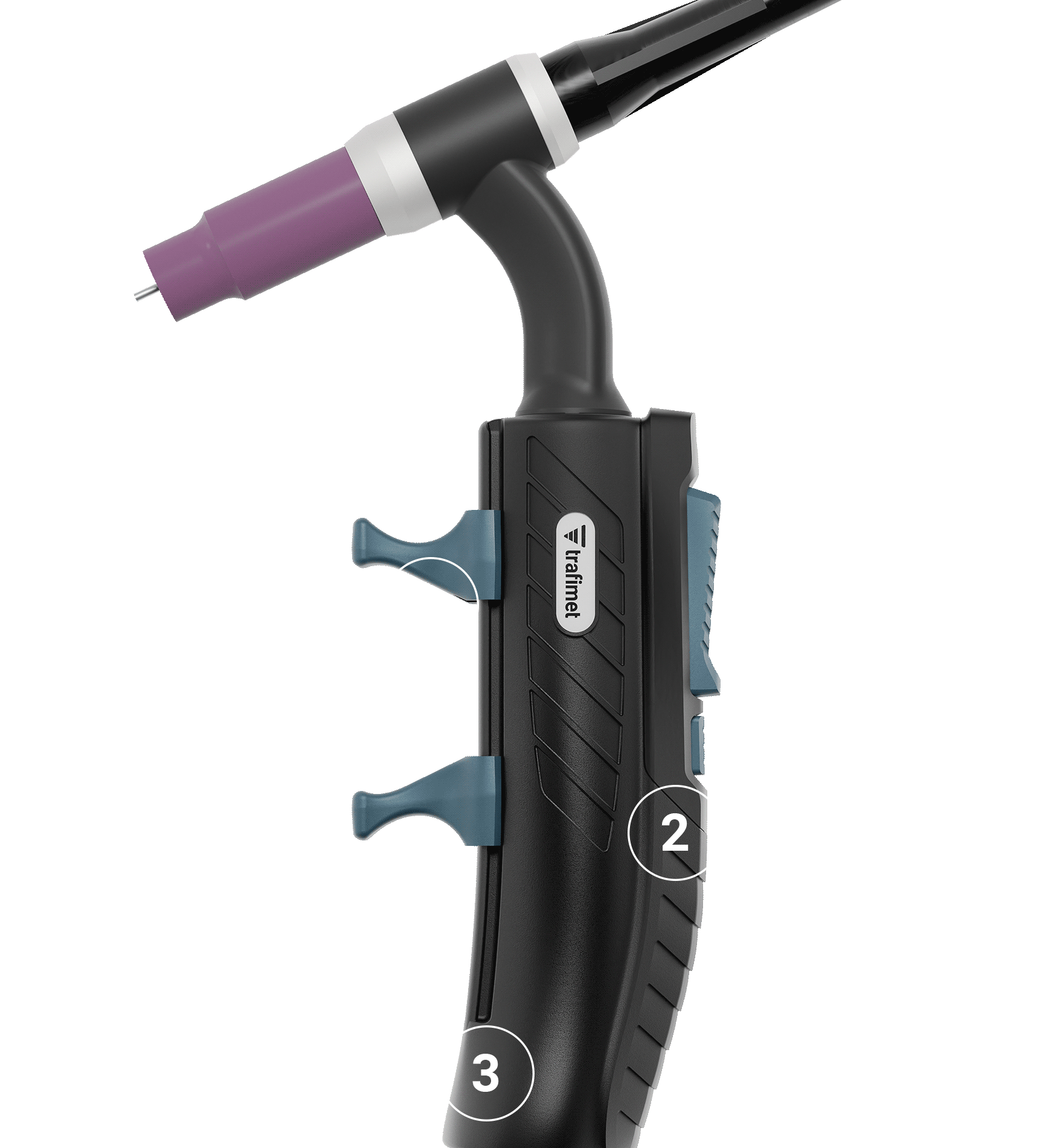 The handle of the new ADAPTIG is an example of next generation welding torch design. Thanks to the ergonomic and adjustable finger supports and the optimized balance, the welder can focus into arc with less wrist strain.