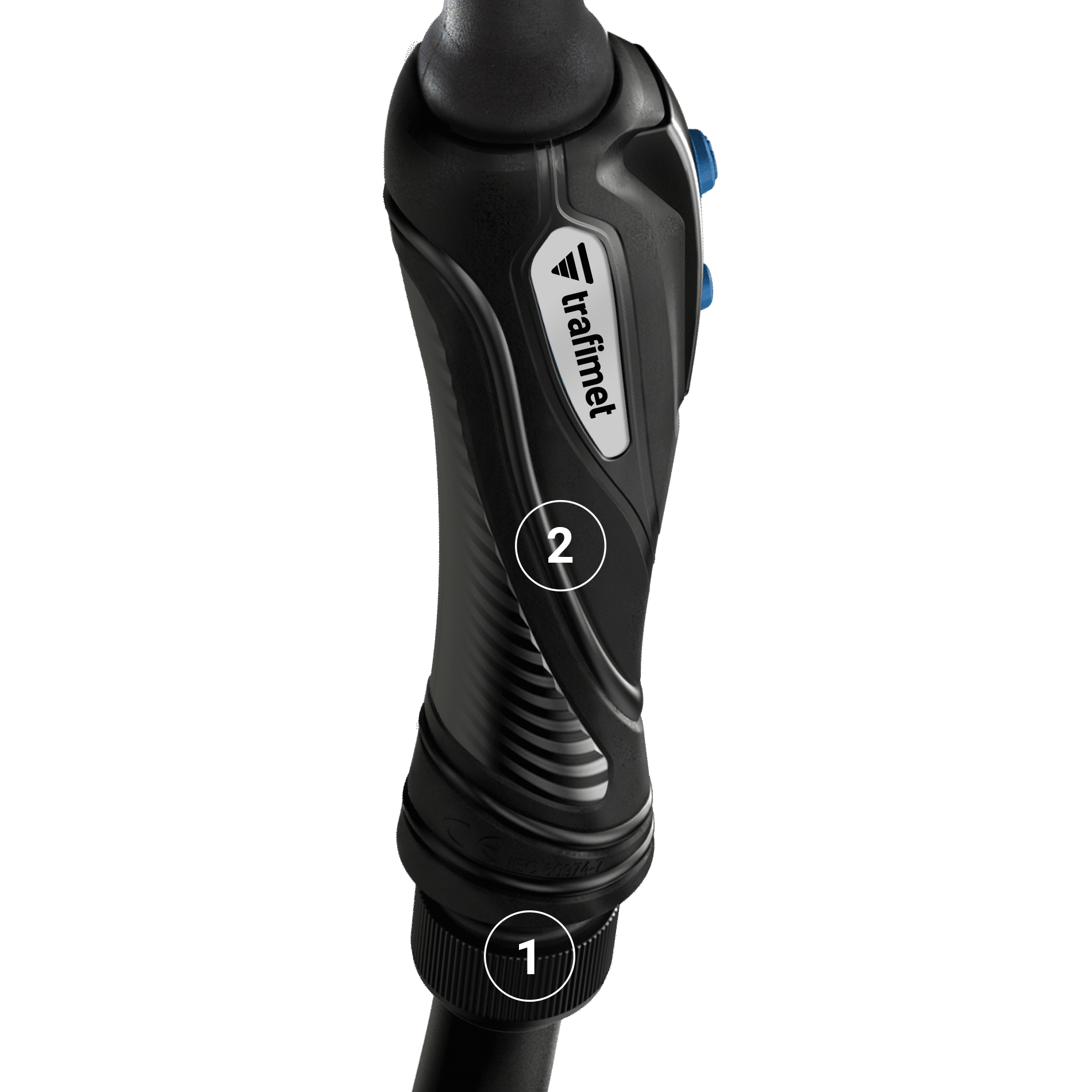 Experience freedom of movement. The cable is connected to the torch with a ball joint, which lightens the weight of the handle and allows a flexible handling. The ball joint also increases the lifetime of the cable set by protecting the electric control cable.